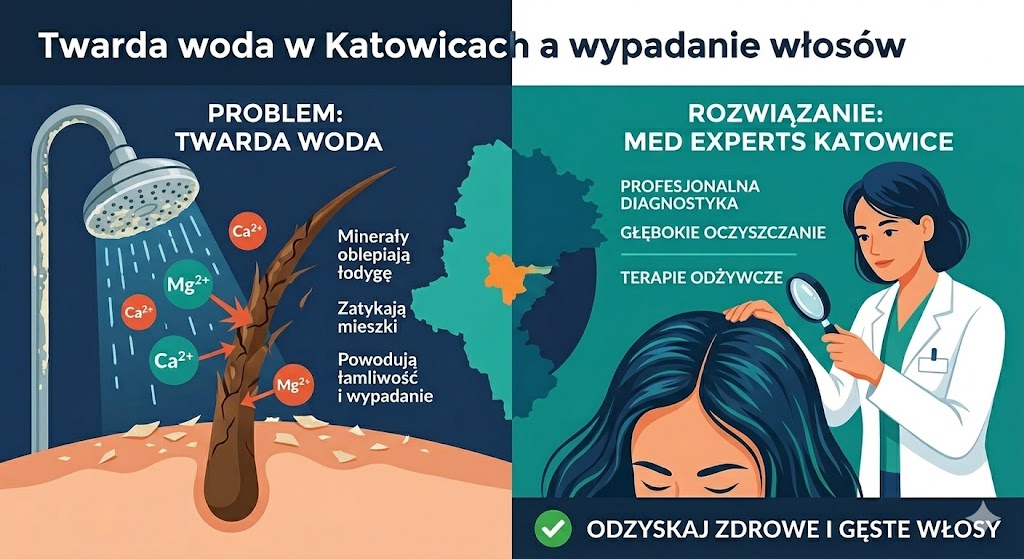 Mieszkańcy aglomeracji śląskiej, a w szczególności Katowic, Chorzowa czy Sosnowca, doskonale znają problem osadzającego się kamienia w czajnikach czy na armaturze łazienkowej. Jednak mało kto zastanawia się, co ta sama „kranówka” robi z naszymi włosami i skórą głowy. Jako trycholog w Med Experts Katowice, coraz częściej diagnozuję problemy, których pierwotną przyczyną nie są hormony czy genetyka, lecz właśnie agresywne środowisko wodne.